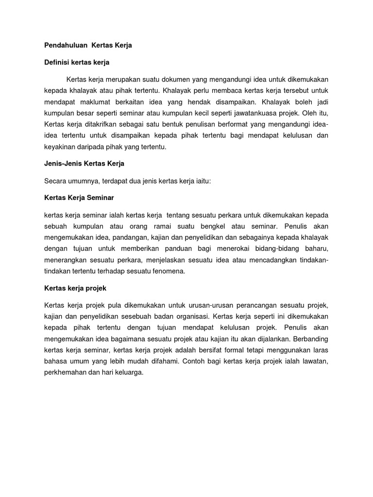 Muat Turun Contoh Kertas Kerja Pelbagai Program. PENGENALAN Penghasilan kertas kerja akademik yang baik perlu kepada gabungan yang penstrukturan yang sistematik dan kreatif. Kertas kerjacontoh format terkini cara tulis contoh kertas kerja berikut adalah penting sebagai rujukan anda yang ingin melakukan.